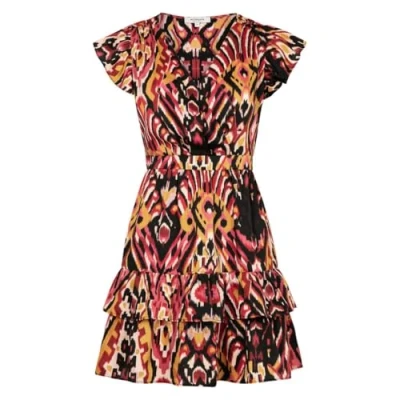 Straight fit with ruffles Short Sleeve belt Abstract Patterns