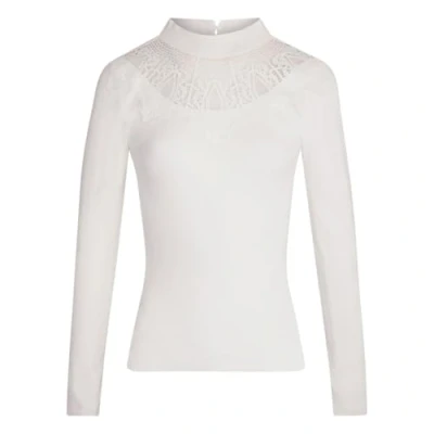Mock neck sweater Long Sleeve lace detail on collar and shoulders