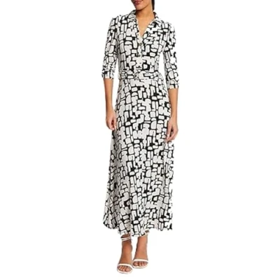Abstract Print Flared Maxi Dress Flared Fit Maxi Dress Lapel V-neck 3/4 sleeve