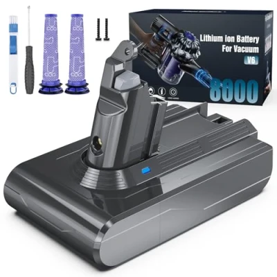 Perfectly Compatible - With Vacuum Cleaner: Dyson V6 DC62 DC58 DC59 DC61 DC72 DC74, Dyson SV03 SV04 SV05 SV06 SV07 SV09 Absolute Animal Fluffy Motorhead. Replace Battery Models: 204720-01, 209432-01, 209472-01, 209476-01, 209560-01, 210691-01, 210692-01, 965874-02 Delivered 2 pieces Free washable filters compatible with Dyson V6 LONGER LIFE - morpilot V6 21.6V 6500mAh large capacity battery is made of high quality cells. morpilot battery designed with a fast charging system and over-discharge protection and no memory effect, charged or discharged if necessary without loss of capacity, which allows morpilot battery compatible with dyson DC62 to last longer Safe to Use - CE FCC ROSH safety certification. Built-in intelligent protection board adopts advanced technology to provide over-current, over-charge, over-voltage and overheating protection to increase battery safety and reliability Know your battery - The indicator light on the morpilot battery indicates the status of the battery. Constant blue: charging or working. Light off: fully charged. Flashing blue: no power. Orange light: Let the battery cool and try again. Red light: charging error (you can try charging later or contact us to change it) IMPORTANT NOTE - To extend the life of the battery, avoid charging it immediately after a full discharge, let it cool for a few minutes. We recommend using the battery at least every two to three weeks