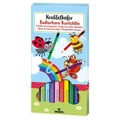 Moses. 16123 Crawling Beetle Erasable Colouring Pencils 12 in Bright Colours For Children Colourful