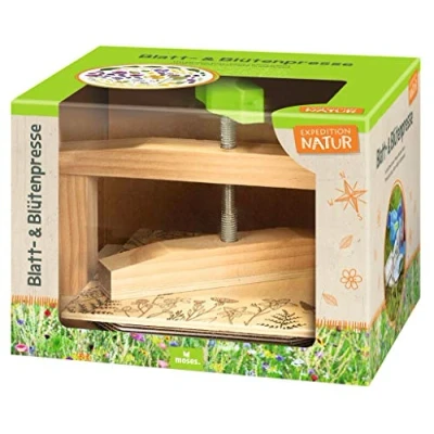 Collect and preserve ✓ With the help of the flower press, up to five leaves, flowers, grasses or flowers can be pressed at the same time and thus preserve their colour splendour Creative in nature. From the various collectible pieces from garden and forest, you can create wonderful DIY projects, works of art for grandparents, school or your own room, make bookmarks or create your own herbarium Perfect for nature lovers ✓ When collecting the jewellery, children learn the plant world of their environment closer and can immortalise their collectables in great crafts Optimal features: the plant press is made of wood, thanks to the rotating handle for children and optimally equipped with corrugated cardboard, paper inserts and instructions (English language not guaranteed) Great gift: in the gift box with viewing window, the wooden press is perfect as a gift for children's birthdays, as a certificate reward, for Christmas or Easter. The dimensions of the flower press are approximately 22 cm x 15.5 cm x 20 cm, Manufacturer: moses. Verlag GmbH