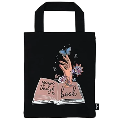 The ideal gift for all book fans. Black book bag with pastel print: open book with saying, an elegant hand and floral motif. For storing and packing book gifts Practical and versatile. Whether as a gift box or as a book cover, the carrying bag protects against dog-ears and dirt and looks very beautiful For all standard book formats ✓ The book bag is suitable for the usual book sizes, whether paperback or thick gift Elegant workmanship ✓ The bag is made from 100% cotton, the hard-wearing canvas fabric can be easily cleaned by hand washing Perfect for on the go. With the dimensions approx. 20 cm x 24 cm and a short carry handle, the reading can be well protected with you to the park, swimming pool, your favourite café or when travelling