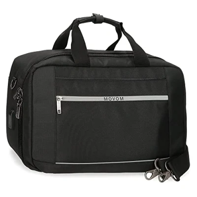 Travel bag 45 cm x 25 cm x 20 cm made of Polyester. Fastening straps to keep your clothes in place and two inner zipper pockets. Very versatile. Can be used for travel or as a sports bag Multiple ways to carry: in hand, with adjustable shoulder strap or crossed, as a backpack or attached to the suitcase with its back band. Built-in USB port with cable to connect to an external battery.