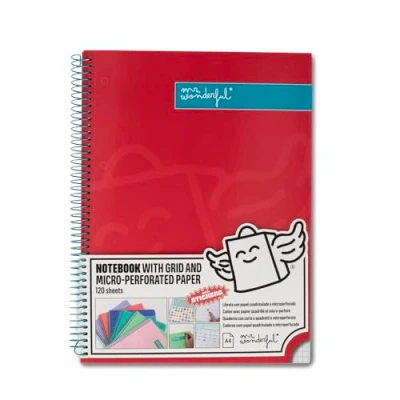 Mr. Wonderful A4 Red Notebook 240 micro perforated squared pages Extra Hard Cover Spiral Binding Includes stickers
