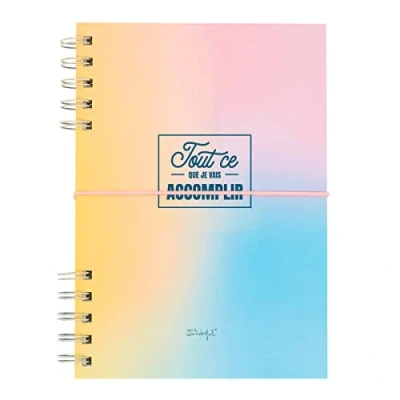 Pink A5 notebook with spiral binding. The spiral is divided into two, which gives it a certain originality. With 80 sheets of 90 g paper. Inner pages: lined It has a FSC certification, which ensures that its production has been carried out with paper from environmentally responsible forests.