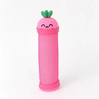 Children's pencil case in the shape of a Mr. Wonderful made of silicone. It has a zipper closure that allows the top and bottom of the pencil case to be snapped, looking like a fun character. The central part, which would be inside that character when closed, is made of a polyester mesh, which allows it to be used as a pencil case, leaving its contents visible. Directions: The silicone part can be cleaned by gently rubbing it with a slightly damp cloth. The polyester part can be washed by hand in cold water if necessary (do not bleach, iron, machine wash, tumble dry, dry clean).