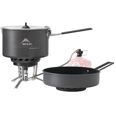 This MSR WindBurner Combo Stove system combines the ultra-efficient performance of WindBurner® stove technology with the ultimate tools for backcountry cooking. Featuring a Fusion® ceramic-coated 2.5 L sauce pot and an 8” skillet, this modular stove system offers simmering and cooking versatility for small groups, and full compatibility with all WindBurner cookware. The stove’s windproof radiant burner and pressure regulator maintain its performance in all conditions, whether you’re cold-weather camping with friends, or cooking a gourmet meal on a windy beach or mountain slope. The WindBurner Combo Stove system nests all components for easy, efficient packing.