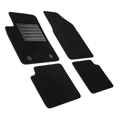Ford Ka II 10.2013>2016 Tailored Mats Set: 2 front mats and 2 rear mats; attachment system: 2 original buttons installed Black carpet, black cotton border with non-slip tape for the entire edge of the carpets - 100% Made in Italy, Automotive Certificate Heat-sealed rubber heel pad on driver's mat to reinforce areas most prone to wear 100% high quality polypropylene, 650 g/m² fibre - 2100 g/m² total weight. Heavy duty mats and are cut to fit your Ford Ka II 10.2013>2016