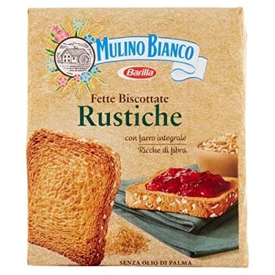 RUSTUCHE - All the rustic flavour of spelt, the virtues of whole wheat and a delicate note given by brown sugar, for a naturally richer breakfast. Rustic Rusks are prepared only with carefully selected and controlled raw materials FOR YOUR BREAKFAST - Ideal for your breakfast: 4 rustic rusks with 4 teaspoons of orange jam, a cup of coffee and nuts. Total calories equal to 20% of your daily energy requirement COOKED SLICES - A line of Mulino Bianco rusks with all the baked goods experience. Discover all the rusks: the golden ones, the wholemeal, barley malt, cereals, the rustic and the sweets MULINO BIANCO - Quality has always been pursued at Mulino Bianco Thanks to our machines and ingredients, the exact home cycle is reproduced with careful quality control. Biscuits, treats, snacks, breads and snacks to accompany you at any time of the day