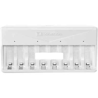 8-slot Universal Charger for NiMH rechargeable batteries with USB Type C Input and global voltage for worldwide use Charges 2,4,6 or 8 AA or AAA NiMH accus: charging time 4,5 hours based on 4x AA 1600 mAh Advanced safety technology incl. safety timer and Minus delta V cut-off to avoid over charging for best charging results Compact and handy charger in modern white color with green LEDs for charging indication. Unique VARTA brand elements ensure exceptional product look Scope of delivery: VARTA Multi Charger incl. 50 cm USB Type C charging cable