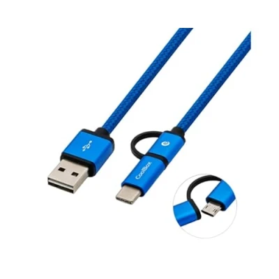 Multi USB 2.0 cable 1 meter and multiple ports, ideal for charging devices simultaneously. Blue color high durability.
