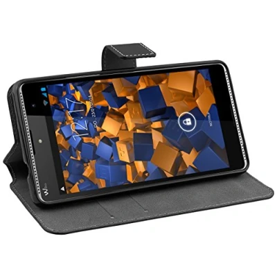 mumbi Book Style Case Compatible with Wiko Robby Mobile Phone Wallet, Black
