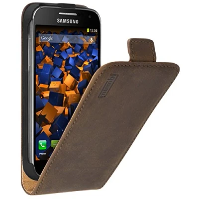 Galaxy S4 Mini flip-style leather case for Samsung Galaxy S4 Mini with magnetic closure Soft inner padding protects your Galaxy S4 Mini protected by the leather case This case protects your Galaxy S4 Mini against external forces and damage. All of your Galaxy S4 Mini's connection ports remain fully accessible and can continue to be used without problems Material: Coated split leather (not man-made leather)
