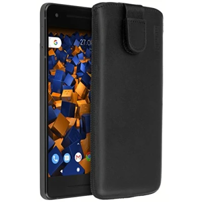 mumbi Genuine Leather Case Compatible with Google Pixel 2 Black