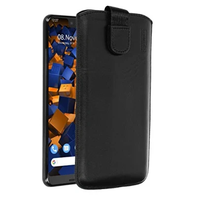 Black leather case - ideal smartphone accessory with practical Velcro fastener for secure closure, prevents the Google Pixel 3 XL from falling out of the leather case. Pixel 3 XL genuine leather case – thanks to the sewn-in flap, which retracts when inserted, you can easily remove your Pixel 3 XL Google from the mobile phone case. Leather wallet case black made of original cowhide leather - the velvety soft inner lining of the leather cases offers complete protection against scratches and looks elegant. The perfect screen protector. Pixel3 XL leather case made of genuine leather – the leather case is carefully sewn by hand to protect your mobile phone, camera and display in the mobile phone case. Quality tested in Germany: tested and measured on the original device, so that the leather case is as precise as possible. Durable, discreet and non-slip, the perfect mobile phone accessory.