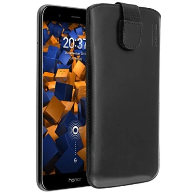 mumbi Genuine Leather Case Compatible with Honor 8 Pro, Black