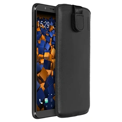 mumbi Genuine Leather Case Compatible with HTC Desire 12+ Black