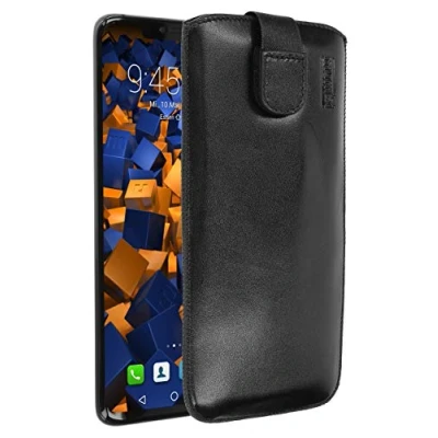 mumbi Genuine Leather Case Made of Cowhide for Huawei Mate 20 Pro With practical Velcro fastener and without a belt loop (which would make the case thicker) The case has a pull-up strap. So the smartphone can be easily pulled out of the case. The inside is velvety soft to protect the screen of your smartphone. Secure protection with this genuine leather case from external influences and damage