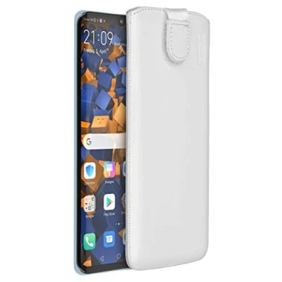 mumbi Genuine Leather Case Compatible with Huawei P30 Pro White