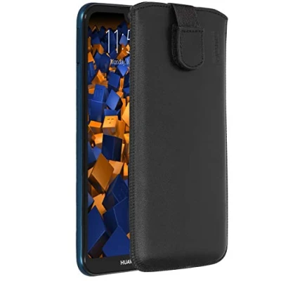 mumbi Genuine Leather Case for Huawei Y5 (2019) / Honor 8s With practical Velcro fastener and without a belt loop (which would make the case thicker) The case has a pull-up strap. So the smartphone can be easily pulled out of the case. The inside is velvety soft to protect the screen of your smartphone. Secure protection with this genuine leather case from external influences and damage