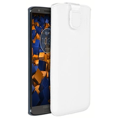 mumbi Genuine Leather Case Compatible with Motorola Moto G6 White