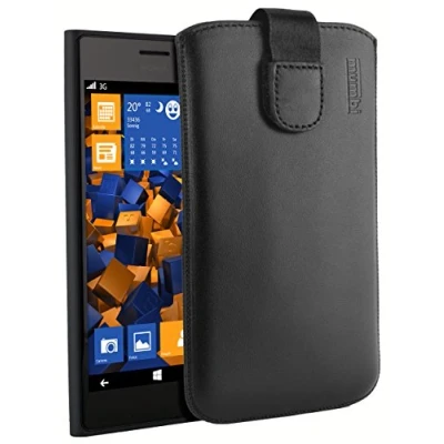 mumbi Genuine Leather Case Compatible with Nokia Lumia 730 Black