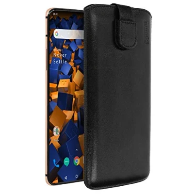 mumbi Genuine Leather Case Compatible with OnePlus 7 Pro, Black