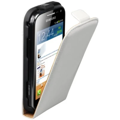 100% perfect fit: the white Samsung Galaxy Ace 2 artificial leather case. Let yourself be impressed by the timeless and simple design of the Ace 2 bag. White mobile phone case for Samsung Ace 2. Protection against dust, light scratches and dirt with the Galaxy Ace 2 wallet case white. The mobile phone case for any occasion. Ace 2 mobile phone case – all buttons, ports and the camera are perfectly cut out on the imitation leather case and can be used despite the mobile phone case. Sturdy case for Samsung Galaxy Ace 2: The material of the Samsung Galaxy Ace 2 mobile phone cases provides a pleasant feel like all mumbi cases. 100% perfect fit Samsung case shockproof white. Quality tested in Germany: no annoying rubber smell, no sharp edges, white Samsung case. Lightweight and discreet, the perfect Samsung Galaxy Ace 2 accessory.