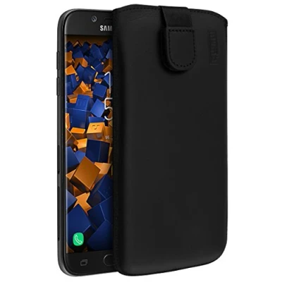 mumbi Genuine Leather Case for Samsung Galaxy J5 (2017) With practical Velcro fastener and without a belt loop (which would make the case thicker) The case has a pull-up strap. So the smartphone can be easily pulled out of the case. The inside is velvety soft to protect the screen of your smartphone. Secure protection with this genuine leather case from external influences and damage