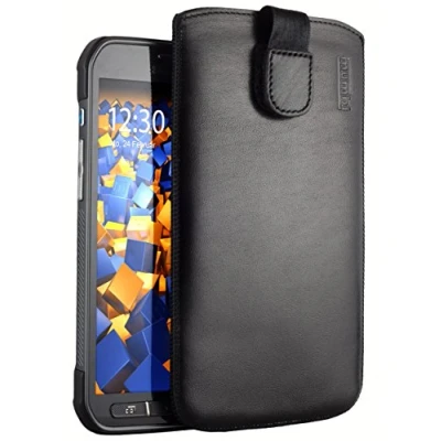 Samsung Galaxy S5 Active case – ideal smartphone accessory with practical Velcro closure for secure closure, prevents it from falling out of the leather case. Genuine leather case: thanks to the sewn-in flap that retracts when inserted, you can easily remove your smartphone from your mobile phone pocket. Samsung Galaxy S5 Active wallet case made of genuine cowhide leather - The velvety lining of the leather bags provides complete protection against scratches and a stylish look. The perfect screen protector. Genuine Leather Case - This leather case is carefully hand stitched to protect your mobile phone, camera and screen in its case. Quality tested in Germany: tested and measured on the original device, so that the leather case is as accurate as possible. Robust, discreet and non-slip, the ideal mobile phone accessory.
