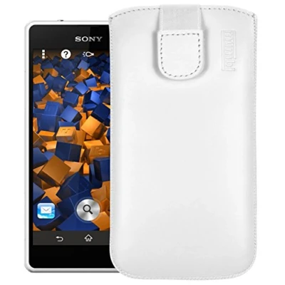 mumbi Genuine Leather Case Compatible with Sony Xperia Z1 Compact Wallet White