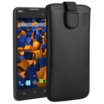 mumbi Genuine Leather Case Compatible with Wiko Lenny 2 Black