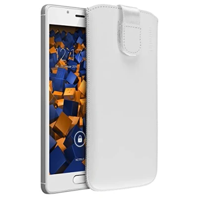 mumbi Genuine Leather Case Compatible with Wiko U Feel Pull Out Tab Function White