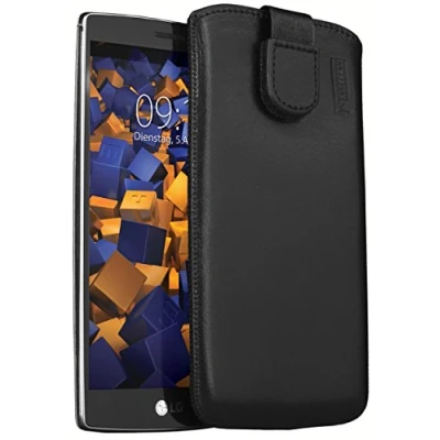 mumbi Genuine Leather Case for LG G4S With practical Velcro fastener and without a belt loop (which would make the case thicker) The case has a pull-up strap. So the smartphone can be easily pulled out of the case. The inside is velvety soft to protect the screen of your smartphone. Secure protection with this genuine leather case from external influences and damage