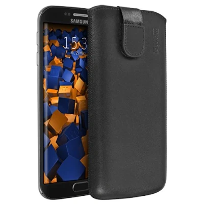 mumbi Genuine Leather Case with Flap and Pull Up Strap for Samsung Galaxy S6 Edge