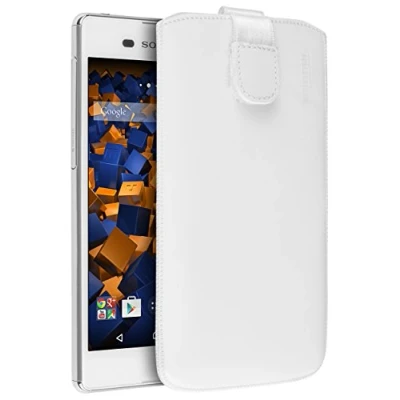 mumbi Genuine Leather Case Made of Cowhide for Sony Xperia M5 With practical Velcro fastener and without a belt loop (which would make the case thicker) The case has a pull-up strap. So the smartphone can be easily pulled out of the case. The inside is velvety soft to protect the screen of your smartphone. Secure protection with this genuine leather case from external influences and damage