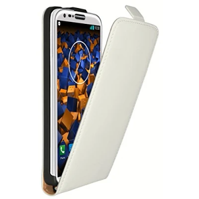mumbi Genuine Leather Flip Case Compatible with LG G2 White
