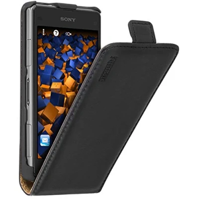 mumbi Genuine Leather Flip Case Compatible with Sony Xperia Z1 Compact Black