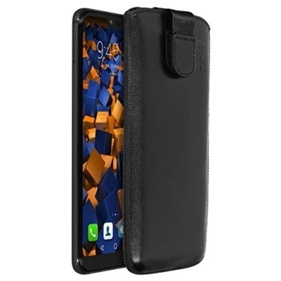 mumbi Genuine Leather Pouch Compatible with Honor 10 Pull Out Tab Black