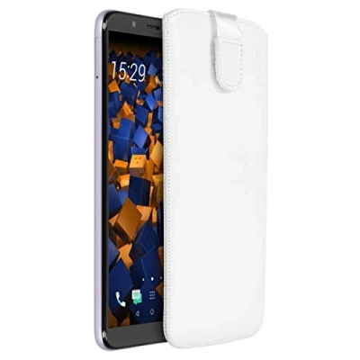 mumbi Genuine Leather Wallet Case Compatible with HTC Desire 12+ White