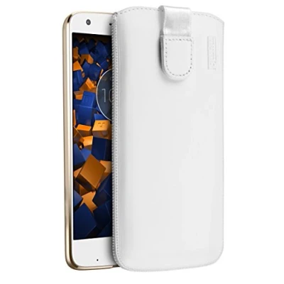 White leather case - ideal smartphone accessory with practical Velcro fastener for secure closure, prevents the Motorola Moto Z2 Force from falling out of the leather case. Moto Z2 Force genuine leather case – thanks to the sewn-in flap, which retracts when inserted, you can easily remove your Z2 Force from the mobile phone case. Leather wallet case white made from original cowhide leather - the velvety soft inner lining of the leather cases offers complete protection against scratches and looks elegant. The perfect screen protector. MotoZ2 Force leather case made of genuine leather – the leather case is carefully sewn by hand to protect your mobile phone, camera and display in the mobile phone case. Quality tested in Germany: tested and measured on the original device, so that the leather case is as precise as possible. Durable, discreet and non-slip, the perfect mobile phone accessory.