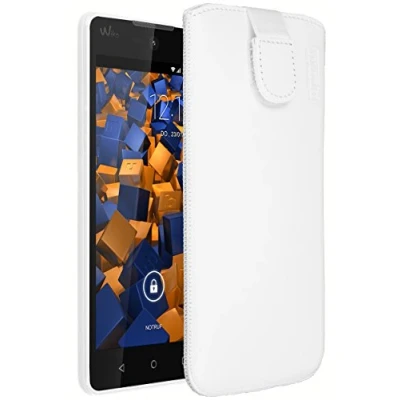 mumbi Genuine Leather Wallet Case Compatible with Wiko Rainbow Lite White
