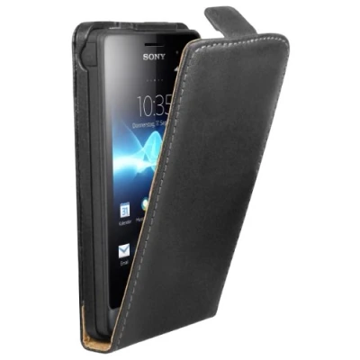 mumbi Premium Flip Case Real Leather for Sony Xperia go Black