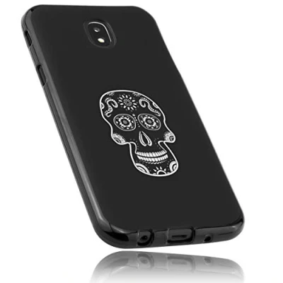 Galaxy J5 (2017) Case: Simple, black with Calavera motif and functional – for those who like it simply Made from a mix of high-quality silicone and TPU makes the case easy to grip and flexible. Fits comfortably in the hand. Easy to attach and remove. Optimum protection against scratches on the back and the camera of the Galaxy J5 (2017). The display is protected by a slight increase in the edge. All buttons and ports remain fully accessible when the case is on - your smartphone remains protected Quality tested in Germany: no rubber smell, no sharp edges, no breakage marks
