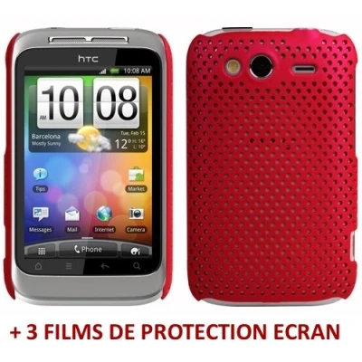 MUZZANO ORIGINAL Alveolia Shell Case with 3 Ultra Clear Screen Protective Film for HTC G13 Red