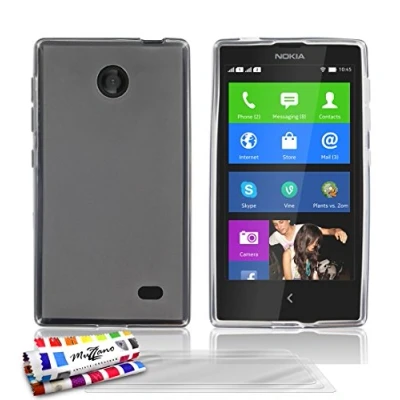 MUZZANO Original Le Glossy Hybrid Flexible Shell Case for Nokia X with 3 Ultra Clear Screen Protective Films Grey