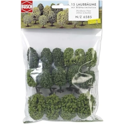 Busch - 15 deciduous trees N (Bu6585) ( 4001738065855) comes from bush. Category - Spoorweg Landschap, Number of pieces: , Difficulty Level: , Minimum age years, Type product: Landscaping, Subtype: , Scale: N - 1:160, Assembly time (hours), , Colour - , Dimensions -40/60mm, Manufacturer: Busch