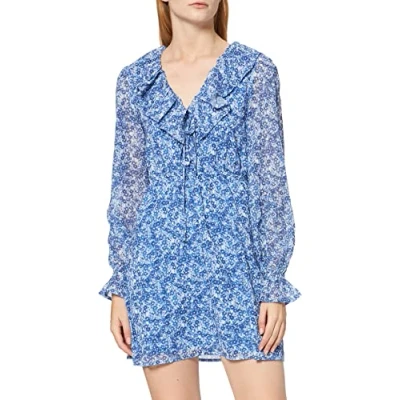 NA KD Women's Frill V Neck Mini Dress Casual, Blue, 40