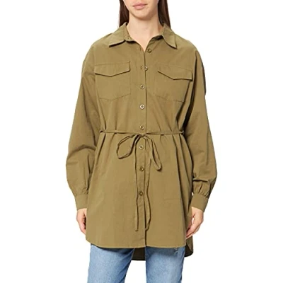 NA KD Women's Oversized Belted Shirt, Green, 18